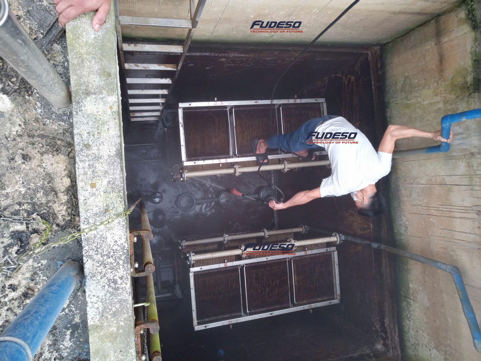 Cẩu hạ tank nước thải
